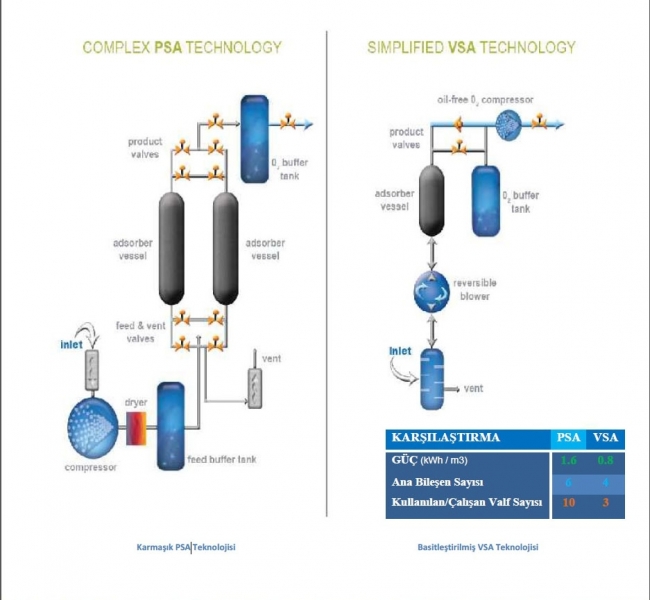 PSA sistemleri ile VSA sistemlerinden ayný lt/dk oksijen alýrken VSA sistemlerinin kullandýðý zeolit miktarýnýn iki katý PSA sistemleri zeolit kullanmaktadýr.